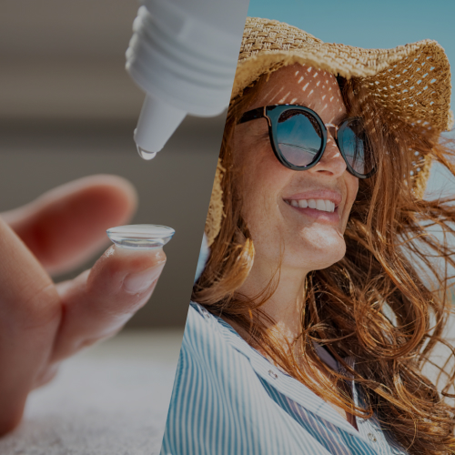 Fehlsichtige können Sonnenbrillen ohne Korrektionswirkung mit Kontaktlinsen tragen. Dabei sorgen die Kontaktlinsen für eine klare Sicht, während die Sonnenbrillengläser vor Blendung und UV-Strahlung schützen. Augenoptiker sorgen zusätzlich für den hier besonders wichtigen Sitz. Kontaktlinsen an sich können zwar auch mit dem unsichtbaren UV-Filter ausgerüstet sein, jedoch bedecken sie nur einen kleinen Teil der Hornhaut und bieten keinen Blendschutz.