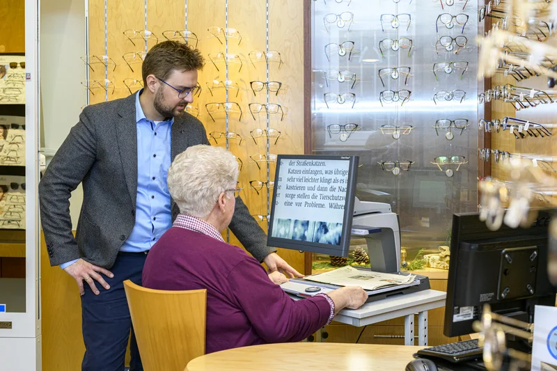 Je nach Grad der vorhandenen Probleme sollte eine Vergrößerung gewählt werden, die normal gedruckten Text wieder komfortabel vergrößert lesbar macht. Bei der Beratung gehen wir dann auf weitere individuelle Bedürfnisse ein und erproben dann gemeinsam mögliche Hilfsmittel. Sollten Hilfsmittel in Frage kommen, so beraten wir Sie auch gerne zu Möglichkeiten der Krankenkassenbeteiligung.